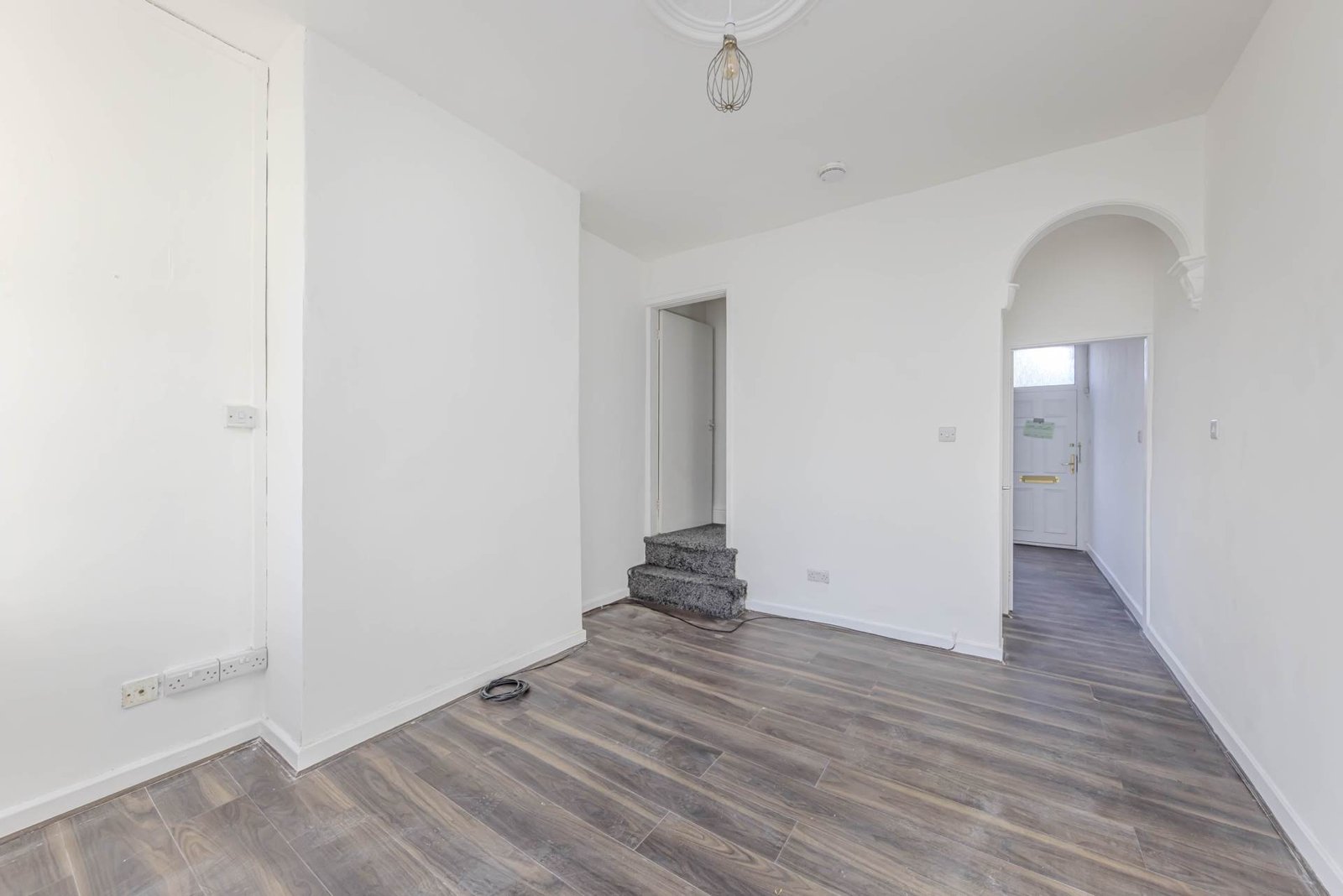 Upstairs, you will find two bedrooms, both of which are bright and spacious. The family bathroom is sleek and contemporary, featuring a bath with shower over, wash basin, and WC.