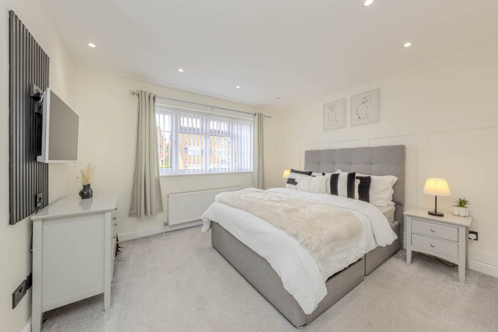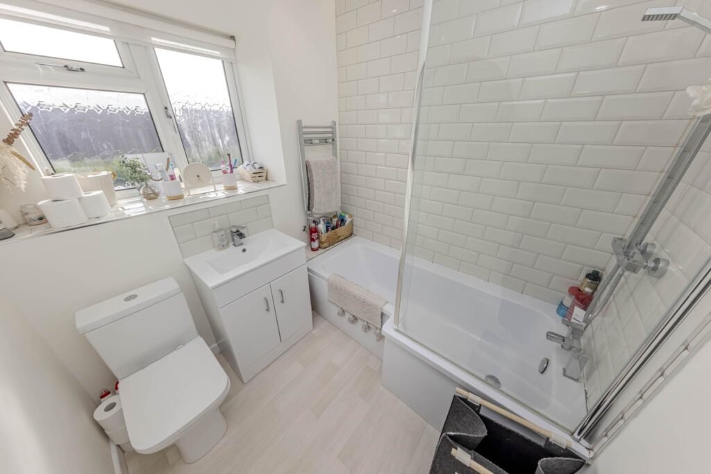 Upstairs, you will find four bedrooms, including the master bedroom with its own ensuite bathroom. The additional bathroom is beautifully finished and offers a luxurious space for relaxation.